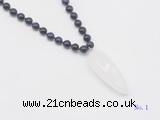 Details: Hand-knotted tiger eye mala necklaces: 108 8mm/10mm round purple tiger eye beads with white crystal pendant/12mm guru bead and white crystal pendant (you can choose different pendants, but there will be tiny different in shape & color, we will make the jewelry randomly according to our stock) Item: GMN4090 Material: No.1: 8mm: 108 8mm purple tiger eye beads & white crystal pendant 10mm: 108 10mm purple tiger eye beads & white crystal pendant No.2: 8mm: 108 8mm purple tiger eye beads, 12mm guru bead & white crystal pendant 10mm: 108 10mm purple tiger eye beads, 12mm guru bead & white crystal pendant Color: See image Length (inch): Necklace length: 8mm: approx 37 - 40 inches (Not including guru bead & pendant) 10mm: approx 46 - 50 inches (Not including guru bead & pendant) Pendants: approx 18*50mm - 25*60mm Quantity Discount Pricing: 1 – 4: None 5 – 49: 95% 50 – 99: 90% 100+: 85% This mala is available in both 8mm and 10mm beads, The listed price is for 1 piece 8mm mala necklace