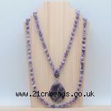 Details: Hand-knotted amethyst mala necklaces: 108 8mm/10mm round dogtooth amethyst beads with blue goldstone pendant/12mm guru bead and blue goldstone pendant (you can choose different pendants, but there will be tiny different in shape & color, we will make the jewelry randomly according to our stock) Item: GMN4652 Material: No.1: 8mm: 108 8mm dogtooth amethyst beads & blue goldstone pendant 10mm: 108 10mm dogtooth amethyst beads & blue goldstone pendant No.2: 8mm: 108 8mm dogtooth amethyst beads, 12mm guru bead & blue goldstone pendant 10mm: 108 10mm dogtooth amethyst beads, 12mm guru bead & blue goldstone pendant Color: See image Length (inch): Necklace length: 8mm: approx 37 - 40 inches (Not including guru bead & pendant) 10mm: approx 46 - 50 inches (Not including guru bead & pendant) Quantity Discount Pricing: 1 – 4: None 5 – 49: 95% 50 – 99: 90% 100+: 85% This mala is available in both 8mm and 10mm beads, The listed price is for 1 piece 8mm mala necklace