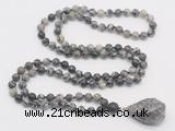 GMN5209 Hand-knotted 8mm, 10mm bamboo leaf agate 108 beads mala necklace with pendant