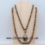 Details: Hand-knotted tiger eye mala necklaces: 108 8mm/10mm round yellow tiger eye beads with smoky quartz pendant/12mm guru bead and smoky quartz pendant (you can choose different pendants, but there will be tiny different in shape & color, we will make the jewelry randomly according to our stock) Item: GMN4939 Material: No.1: 8mm: 108 8mm yellow tiger eye beads & smoky quartz pendant 10mm: 108 10mm yellow tiger eye beads & smoky quartz pendant No.2: 8mm: 108 8mm yellow tiger eye beads, 12mm guru bead & smoky quartz pendant 10mm: 108 10mm yellow tiger eye beads, 12mm guru bead & smoky quartz pendant Color: See image Length (inch): Necklace length: 8mm: approx 37 - 40 inches (Not including guru bead & pendant) 10mm: approx 46 - 50 inches (Not including guru bead & pendant) Pendants: approx 18*35mm - 28*40mm Quantity Discount Pricing: 1 - 4: None 5 - 49: 95% 50 - 99: 90% 100+: 85% This mala is available in both 8mm and 10mm beads, The listed price is for 1 piece 8mm mala necklace