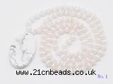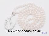 Details: Hand-knotted agate mala necklaces: 108 8mm/10mm round tibetan agate beads with white howlite pendant/12mm white crazy agate guru bead and white howlite pendant (you can choose different pendants, but there will be tiny different in shape & color, we will make the jewelry randomly according to our stock) Item: GMN5051 Material: No.1: 8mm: 108 8mm tibetan agate beads & white howlite pendant 10mm: 108 10mm tibetan agate beads & white howlite pendant No.2: 8mm: 108 8mm tibetan agate beads, 12mm white crazy agate guru bead & white howlite pendant 10mm: 108 10mm tibetan agate beads, 12mm white crazy agate guru bead & white howlite pendant Color: See image Length (inch): Necklace length: 8mm: approx 37 - 40 inches (Not including guru bead & pendant) 10mm: approx 46 - 50 inches (Not including guru bead & pendant) Quantity Discount Pricing: 1 - 4: None 5 - 49: 95% 50 - 99: 90% 100+: 85% This mala is available in both 8mm and 10mm beads, The listed price is for 1 piece 8mm mala necklace