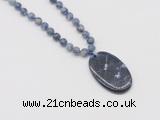 Details: Hand-knotted gemstone mala necklaces: 108 8mm/10mm round blue spot stone beads with sodalite pendant/12mm sodalite guru bead and sodalite pendant (you can choose different pendants, but there will be tiny different in shape & color, we will make the jewelry randomly according to our stock) Item: GMN5065 Material: No.1: 8mm: 108 8mm blue spot stone beads & sodalite pendant 10mm: 108 10mm blue spot stone beads & sodalite pendant No.2: 8mm: 108 8mm blue spot stone beads, 12mm guru bead & sodalite pendant 10mm: 108 10mm blue spot stone beads, 12mm guru bead & sodalite pendant Color: See image Length (inch): Necklace length: 8mm: approx 37 - 40 inches (Not including guru bead & pendant) 10mm: approx 46 - 50 inches (Not including guru bead & pendant) Quantity Discount Pricing: 1 - 4: None 5 - 49: 95% 50 - 99: 90% 100+: 85% This mala is available in both 8mm and 10mm beads, The listed price is for 1 piece 8mm mala necklace