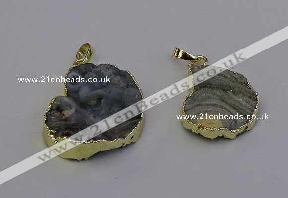 Details: Gemstone pendant jewelry: 18*25mm - 25*30mm freeform druzy agate gemstone with brass setting pendants wholesale Item: NGP6943 Material: agate Shape: freeform Color: See image Size(mm): approx 18*25mm - 25*30mm (Hole: approx 5mm) Quantity Discount Pricing: 1 – 4: None 5 – 49: 95% 50 – 99: 90% 100+: 85% The listed price is for one pendant The pictures of this item on our website are just a reference to tell you that they are in mixed colors and/or mixed shapes. However, the colors or shapes we get from the factory may vary each time, so we will send your orders randomly according to our stock. |